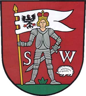 Na červeném štítě stojí na zeleném trávníku sv. Václav ve stříbrné zbroji, opásaný mečem a s knížecím kloboukem na hlavě. V pravici drží stříbrnou korouhev s hnědou žerdí; korouhev je klínovitě vykrojená do dvou cípů a blíž žerdi je na ní černá svisle postavená, doleva hledící orlice s červenou zbrojí a stříbrným perizoniem. Levici má kníže v bok. Mezi jeho patami je malá rostlina o třech listech. Po jeho pravé straně je ve výši kolen stříbrné písmeno S, po levé straně je podobné stříbrné W a pod ním doprava obrácený stříbrný ježek.