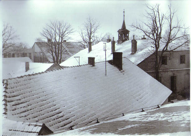 Dnes již zbořené budovy ve středu obce, zbořeno před výstavbou nákupního střediska