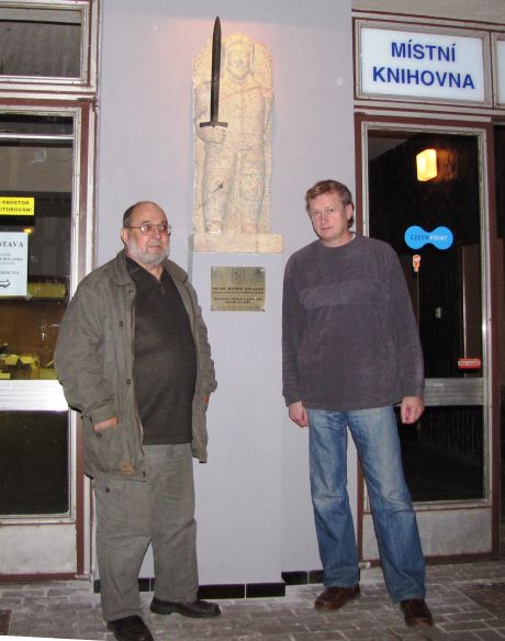 Petr Šindler- sochař, Plavec Ladislav, Mgr.Ivan Šulc, městys Stonařov.