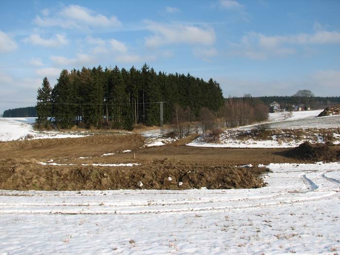 Výstavba rybníků za obcí u Zhorce